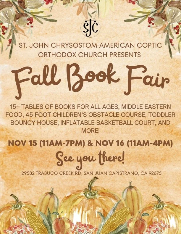 Sign up to stay in the loop with everything happening at St. John Chrysostom American Coptic Orthodox Church.